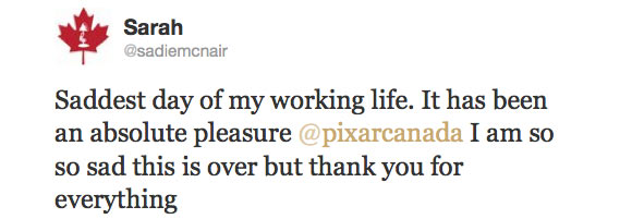 Sarah McNair, Pixar Canada’s director of human resources, calls it the saddest day of her professional career: