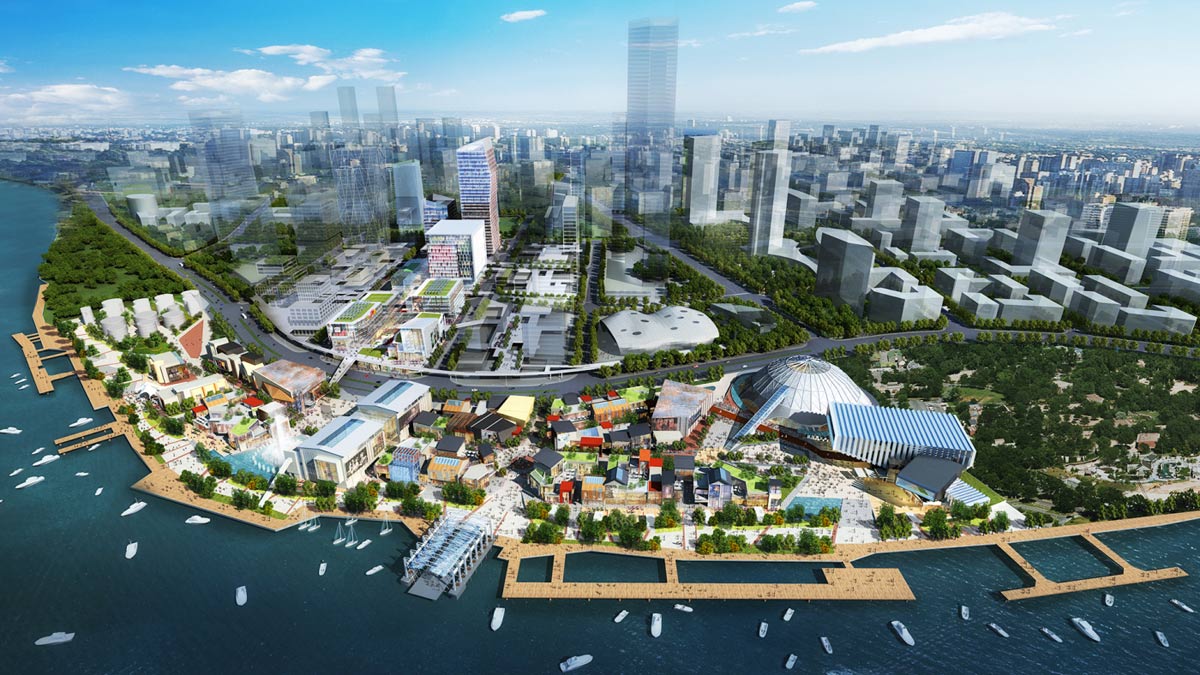 Last week DreamWorks revealed the first renderings of the Dream Center, a 40-acre, $2.4 billion development in Shanghai, China. Scheduled to open in 2017 (or early-2018), the site will house the Oriental DreamWorks production studio, which is currently working on Kung Fu Panda 3, as well as the world’s largest IMAX screen, eight outdoor plazas, hotels, restaurants, theaters, galleries, and tourist attractions.