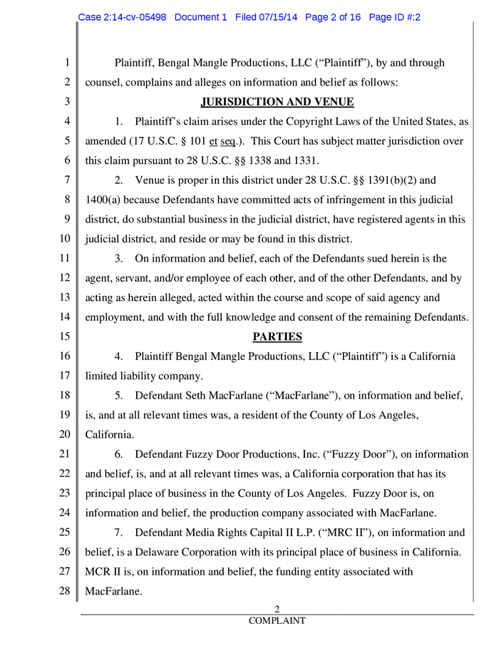 Below you can read the entire copyright infringement complaint against MacFarlane: