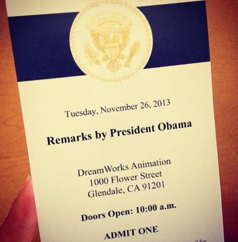 Tomorrow, President Obama will deliver a speech about the economy at DreamWorks Animation. It is, as far as we know, the first speech ever given by an American President inside of an animation studio.