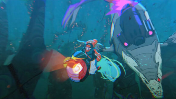 The animation in Mission Popo is sharp and well-executed, with a 2d aesthetic that gives it an anime-like feel. Crisp camera movements heighten the sense of danger in an adrenaline-filled chase scene (whose idea was it to put a jetpack on a sea monster?) which culminates in an explosive climax.