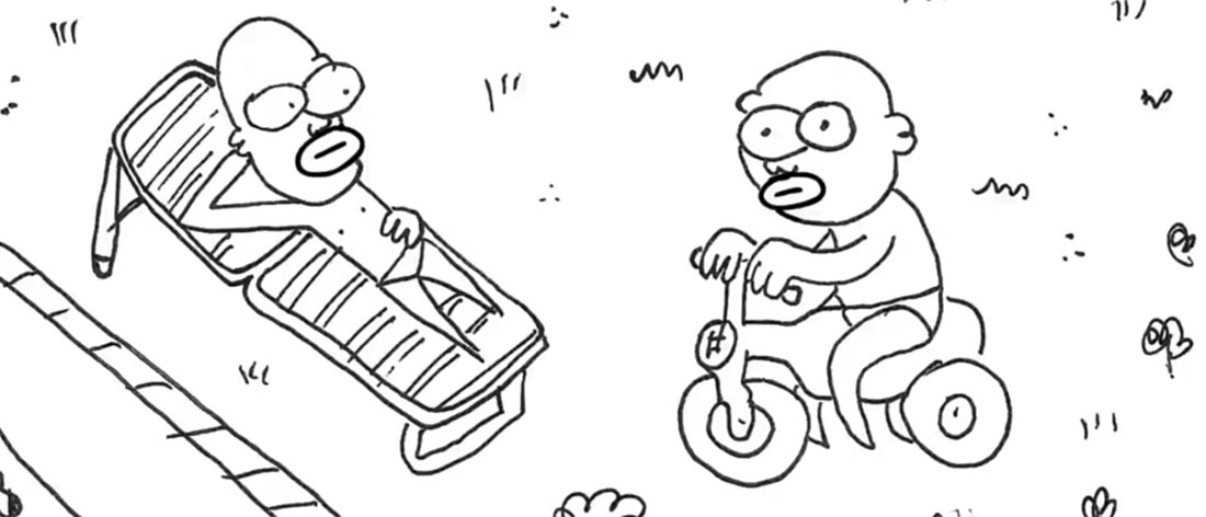 “Bru decides they need to make some bucks by playing a gig, but Boegie doesn’t know how to play the bass.” Film by Mike Scott. Music and sound effects by David Scott.
