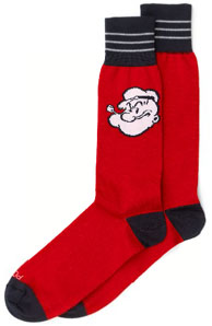 I love Popeye cartoons as much as the next guy – maybe a little more than the next guy – but even I can’t afford the new clothing line now on sale at Bloomingdale’s. The store is promoting its new King Features Collection featuring designs using Popeye, Beetle Bailey, The Phantom and Hagar the Horrible at its stores this week. Popeye T-Shirts for $40 bucks, a pair of socks (left) is $45 and a Popeye scarf for $145? Blow that down! The department store even took out full page ads in major newspapers yesterday to hype its annual “New York Nights” event, taking place tonight at 6pm in stores in New York (including the Men’s Store on 59th street and Third Avenue in Manhattan) and Los Angeles (in Sherman Oaks, Santa Monica, and at The Beverly Center). “Attendees are invited from 6 to 8 p.m. to see the merchandise, which includes everything from T-shirts and overcoats to sneakers and toys. All of the merch will be available for purchase through the holiday season.” All of it way overpriced! In this economy, I’ll gladly pay you Tuesday (2016) for those Popeye socks at today.