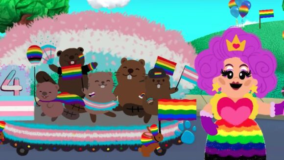 Nickelodeon show Blue’s Clues released a singalong video themed around a Pride parade. To the tune of the Civil War song “When Johnny Comes Marching Home,” the host (voiced by RuPaul’s Drag Race contestant Nina West) sings an anthem celebrating LGBTIA+ representation, acknowledging the different kinds of family as they pass by: the parade includes gay, trans, nonbinary, asexual, bisexual, and pansexual members. “Love is love is love, you see / And everyone should love proudly,” West concludes.