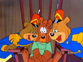 Here’s a heartwarming moment of corporate cooperation as cartoon characters owned by four different entertainment conglomerates—Mickey Mouse (Disney), Bugs Bunny (Warner Bros.), Scrat (20th Century Fox), and SpongeBob (Viacom)—team up to beat the living crap out of a real-life human being.