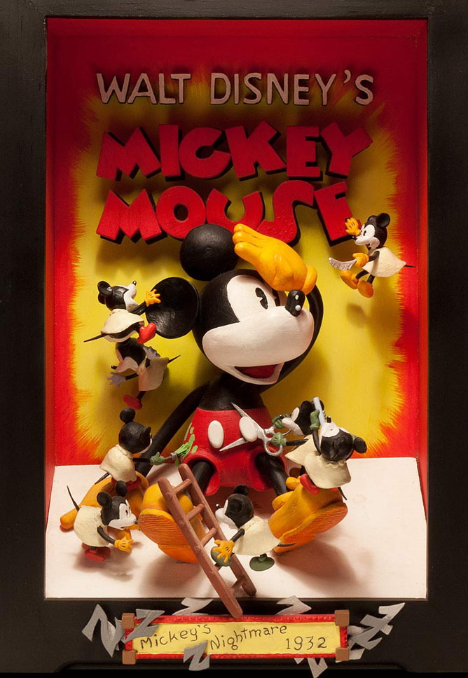In addition to doing pieces devoted to Disney classics, Ponstingl tackled everything from Little Nemo to Mary Jane and Sniffles! Mutt and Jeff, Snuffy Smith, Popeye, Beetle Bailey, Sad Sack are some of the comic strips he did; Felix The Cat, Daffy Duck, Woody Woodpecker, Mickey, Donald and Goofy are among the animated characters he’s carved.