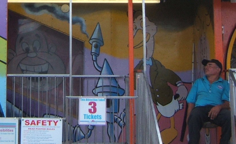 We were greeted first by a great array of sideshow freaks, including a little guy named ‘Poobaa’ who the barker proclaimed as being the last living Muchkin from the Wizard of oz alive (he was 9 at the time). Poor Poobaa was made to swallow fire over and over to a bored looking crowd of locals.