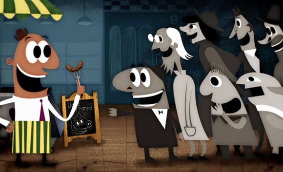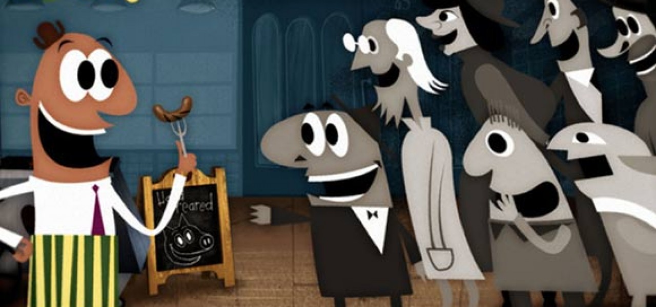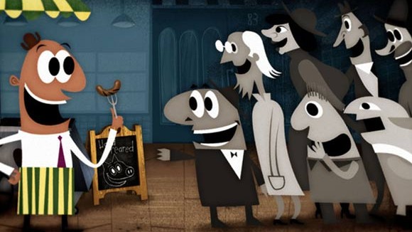 The idyllic market square of two artisan stallholders is invaded by a slick fast-food vendor, set to steal all their customers.