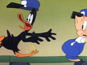 The Great Piggy Bank Robbery (1946) is the pinnacle of Clampett’s directorial career and quite possibly the height of animated filmmaking full-stop. The film plunges us into Daffy’s unbalanced mental state as he dreams about being master detective Duck Twacy. Rod Scribner animates the amazing bit where Daffy talks to himself on the phone; every individual frame of Scribner’s work is totally unique and hilarious, and yet it flows together beautifully.