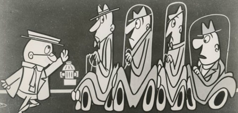 Sam Henderson has uploaded a rare, heavily illustrated article about UPA on his Magic Whistle blog. The article, by Catherine Sullivan, appeared in the November 1955 issue of American Artist. The text is rather slim, but the images are from a variety of UPA works including commercials and industrials, as well as theatricals like The Jaywalker (pictured above). Worth a look.