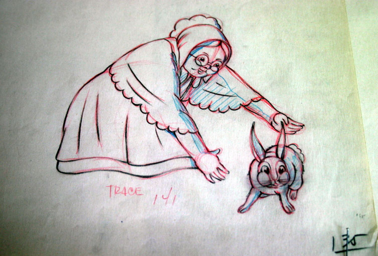 Apparently the museum is possession of a cache of original pencil animation for a series of 1937 Columbia Screen Gems cartoons. Artwork above is from the shorts (left to right): I Want To Be An Actress (a Scrappy cartoon), Spring Festival (a Color Rhapsody) and The Masque Raid (a Krazy Kat cartoon). And there’s material from other films as well.