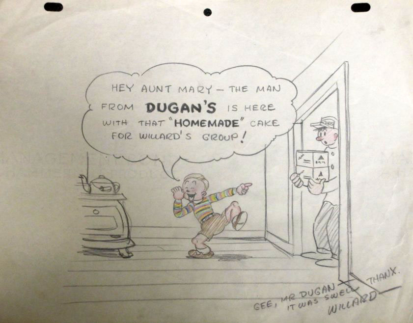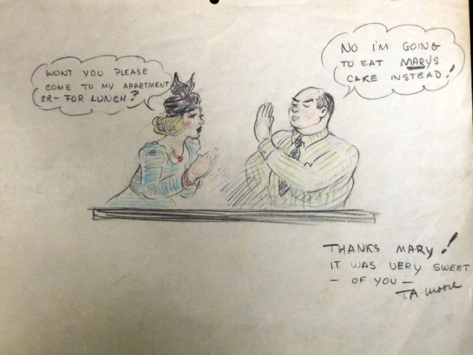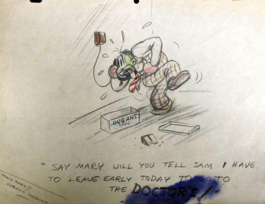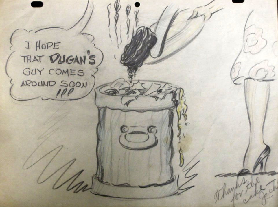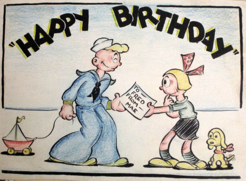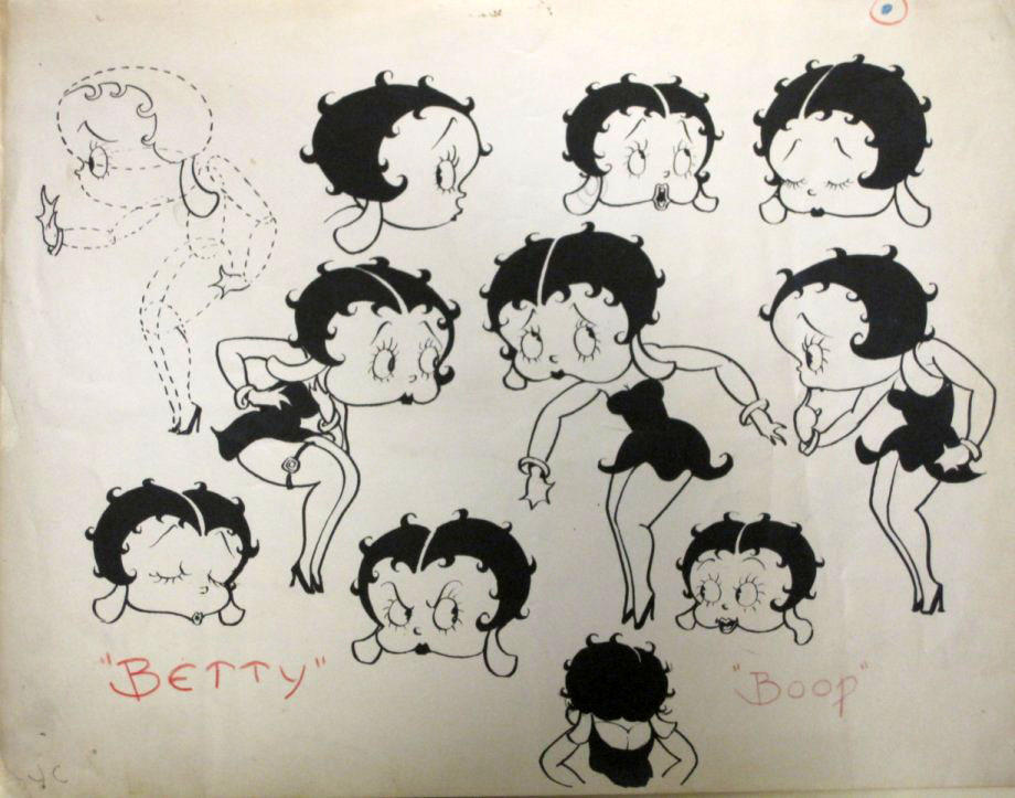 It includes inscribed photographs of Max and Dave Fleischer, model sheets of Betty Boop and Popeye, personal gag drawings from animators Dave Tendlar, George Germanetti, Tom Moore, Willard Bowsky, Gordon Sheehan, Tom Golden and “Jack” (Jack Mercer?). Click thumbnails below to enlarge: