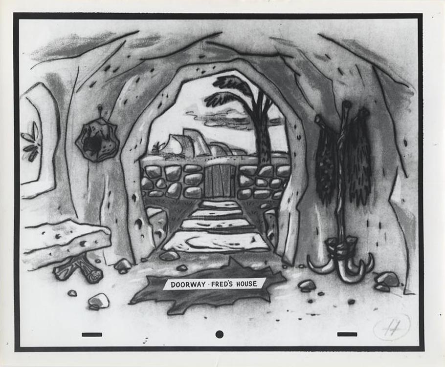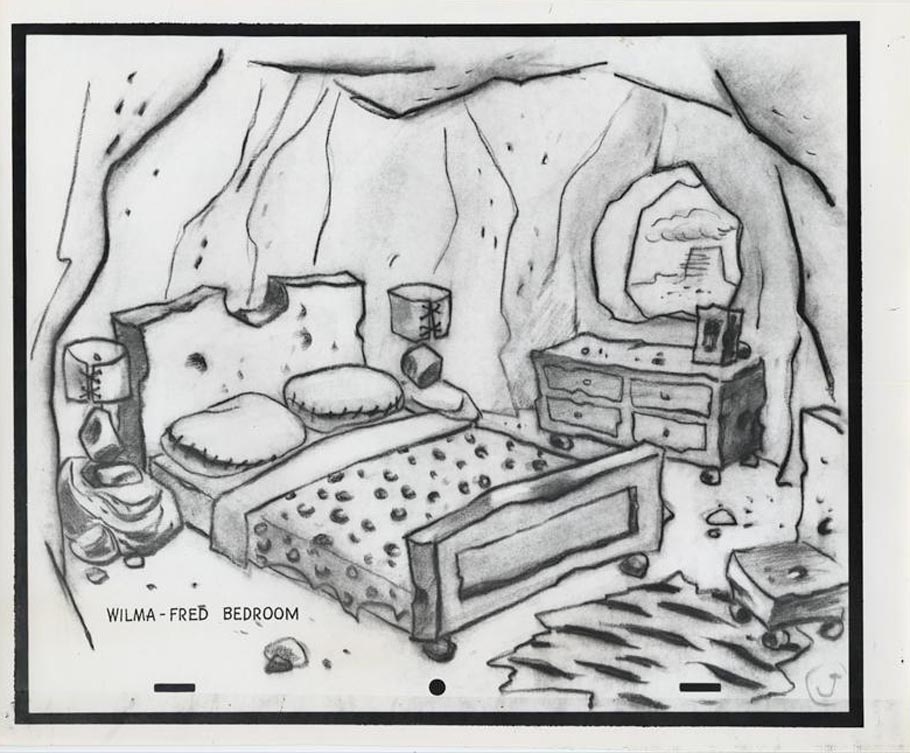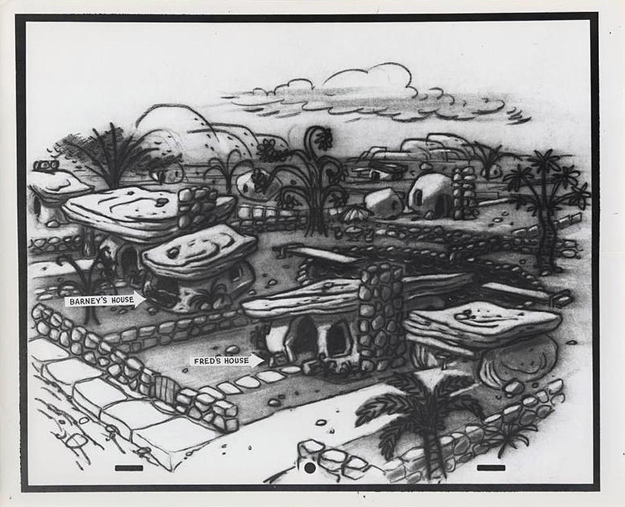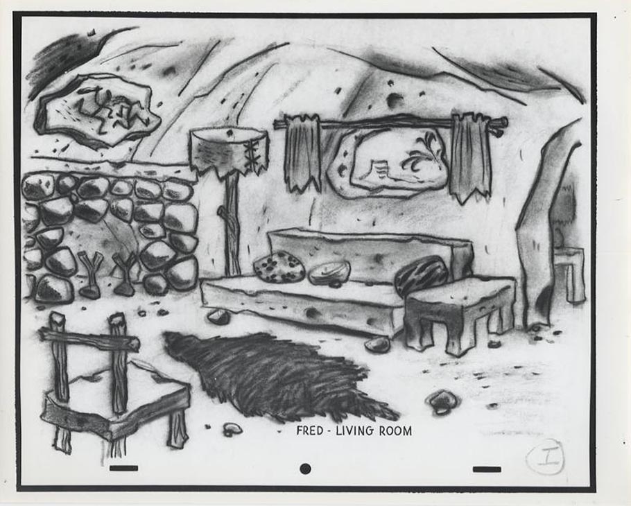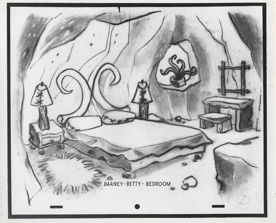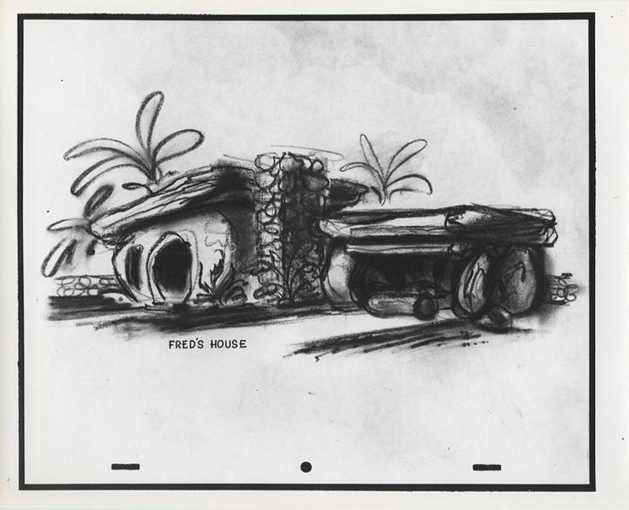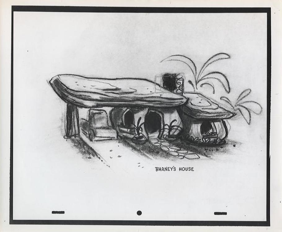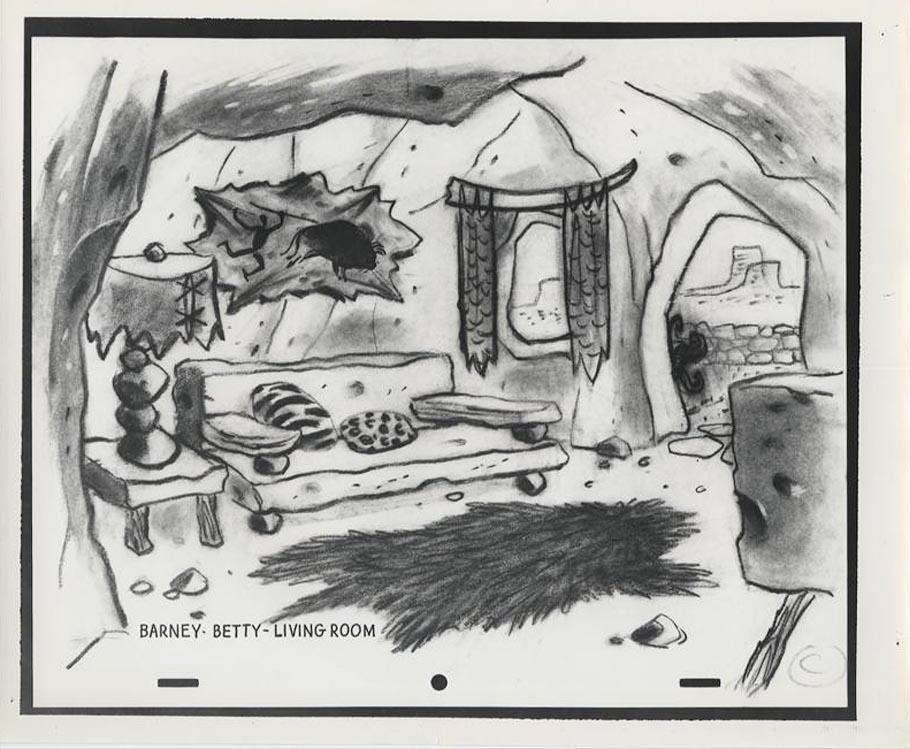 Benedict dreamt up the Flintstones homes almost entirely from imagination. He was once asked if he used any reference to design them. He replied, “No, with the exception of on the interior of one of the samples I made, I did look up some prehistoric stuff—cave paintings. I just looked up in there and got the old typical buffalo looking thing running across a wall, just to get the flavor of it.”