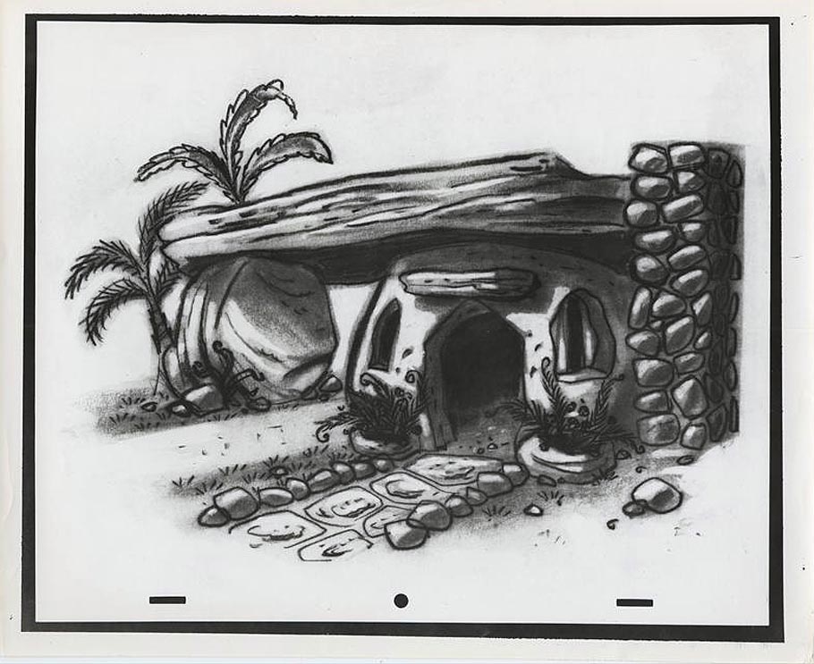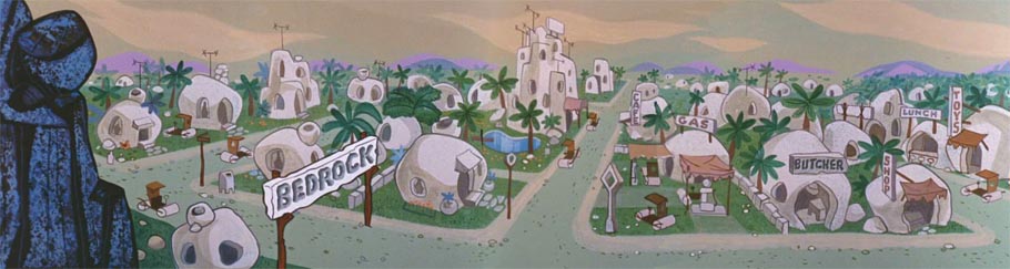 Benedict had had a bit of practice with the Stone Age setting. He had designed cavemen and cavehomes once before for the 1955 Tex Avery short The First Bad Man: