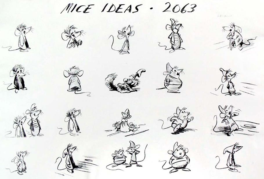 Below you’ll find a small gallery of Peet’s incredible draftsmanship, craft, and creativity. For more, we recommend his official website, Michael Sporn’s website for Peet’s storyboards, this analysis of Peet’s compositions by story artist Dave Pimentel, and this appreciation by story artist Mark Kennedy. Many of the images below are from animator Andreas Deja, who often posts about Peet on his blog though the posts are untagged so you have to search for them.