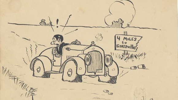This comic from Tex Avery’s days at North Dallas High School (see larger version here) is currently up for auction on Howard Lowery’s site. Bidding is currently up to $610 with 13 days left in the auction. It’s hard to see any signs of the future cartoon genius in this drawing, but it’s interesting as a historical piece.