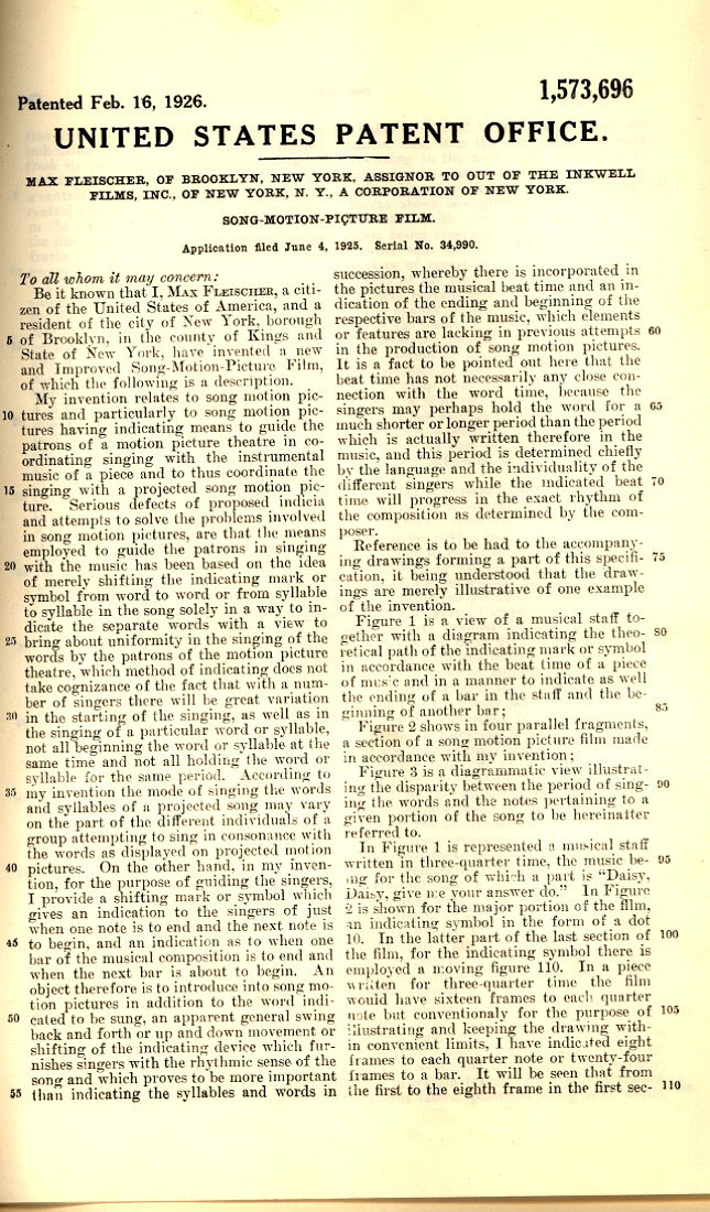 Max Fleischer’s Screen Song Patent