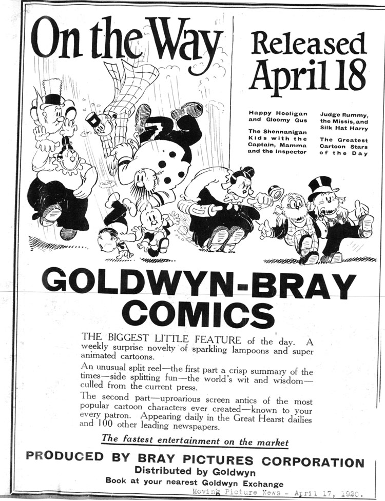 Here’s a fun gallery of actual film frames from the collection of Tom Stathes – the collector extraordinaire who provided the rare prints that ran on on TCM’s Rare Animation night (Oct. 21st 2012). These films were shown as part of an hour of Silent Animation From New York Studios – and included shorts from Bray Studios (poster #1, logo #2 and trade ad #3), The Artists Dream (#4), Bobby Bumps Starts For School (#5), The Haunted Hotel (#6), Mutt and Jeff in Fireman, Save My Child (#7), Jerry on the Job in The Bomb Idea (#8), Koko the Clown in Trip To Mars (#9), Al Falfa in Springtime (#10), Krazy Kat in Scents and Nonsense (#11) and Van Bueren’s sound cartoon The Farmerette (#12). More information on each short is posted here.