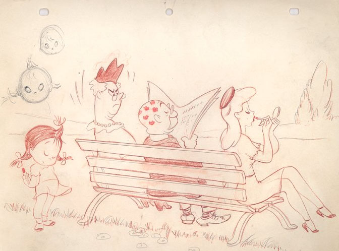 The exhibition features artwork by Warren Kremer, Ernie Colón, Sid Couchey, Howard Post, Fred Rhoads, Ham Fisher, Dom Sileo, Marty Taras, and many more. Image above, a Bill Tytla Little Audrey gag drawing, will not be in the show (but you can click here to see a larger image). Details regarding the opening reception and other upcoming Harvey events will be announced shortly on the Museum’s website.