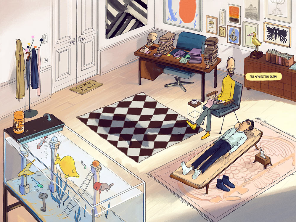 “It combines various techniques and languages from different media, such as classical illustration and animation with digital storytelling and the language of comics, as well as film score with opera,” explained Anicker. “The hand-drawn illustrations and animations are loosely inspired by the staging and set design of our partners at the Bregenz performing arts festival in Austria, while live recordings of the Vienna Symphony Orchestra and singers from the Bregenz production provide the foundation for the sound design, which plays with and deconstructs Mozart’s original composition. Seven complete arias are accessible as moments of interaction in the graphic novel, reinforcing the connection to the classic.”