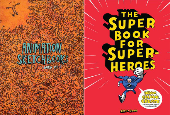 On Friday, we’ll be giving away two books: the handsome coffeetable volume Animation Sketchbooks by Laura Heit and the quirky drawing book The Super Book for Superheroes by Jason Ford.