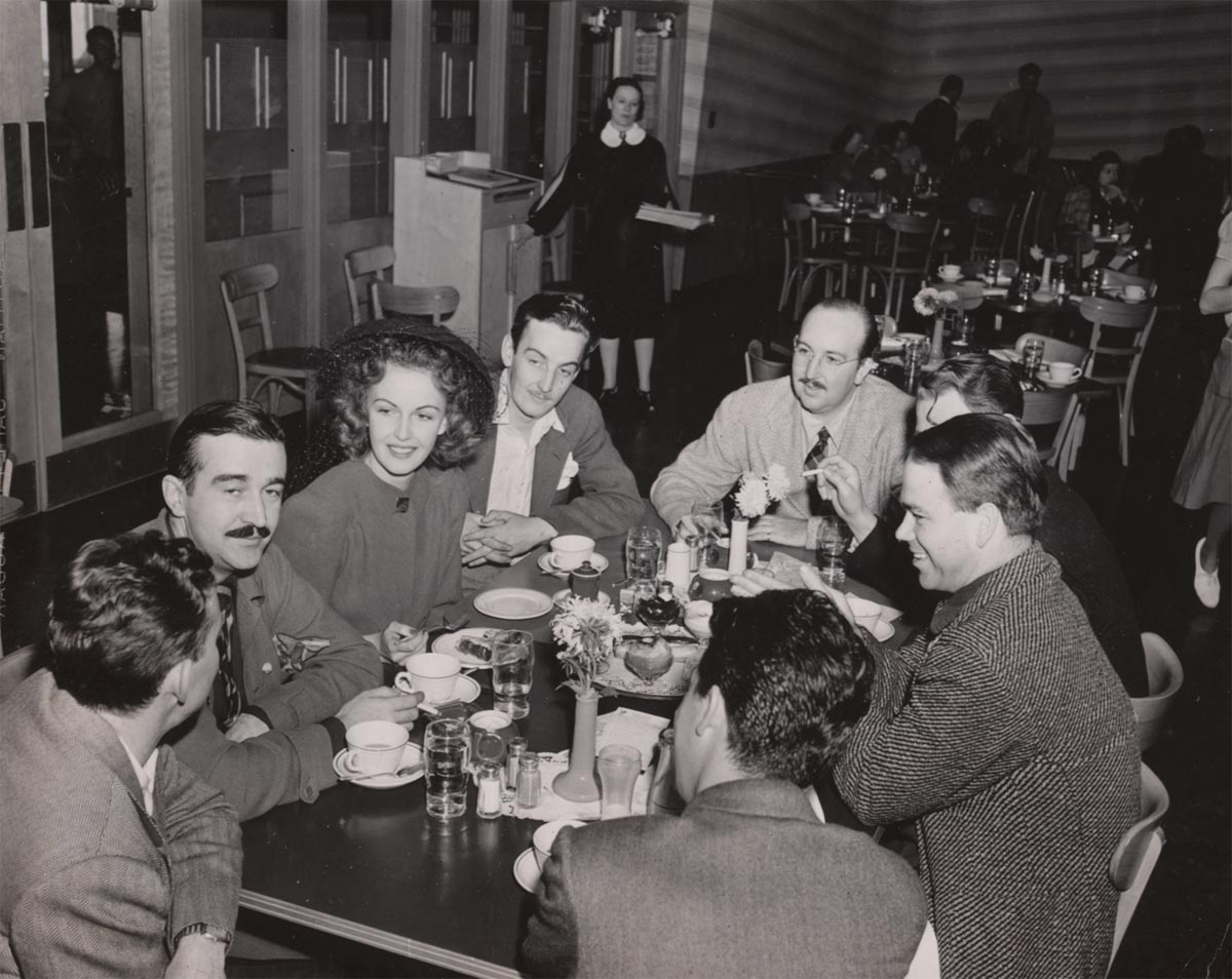 A photo during the production of Disney’s The Reluctant Dragon on November 7, 1940. I hope somebody will get a kick out of it. Actress Frances Gifford, who played a studio artist in the film, is the woman in the photo. The other people are, clockwise from Gifford: John McLeish, T. Hee, Ward Kimball, Fred Moore (back), Norm Ferguson (back) and Erdman Penner. Click on pic to biggify.