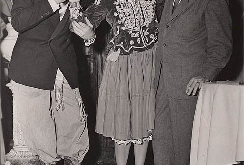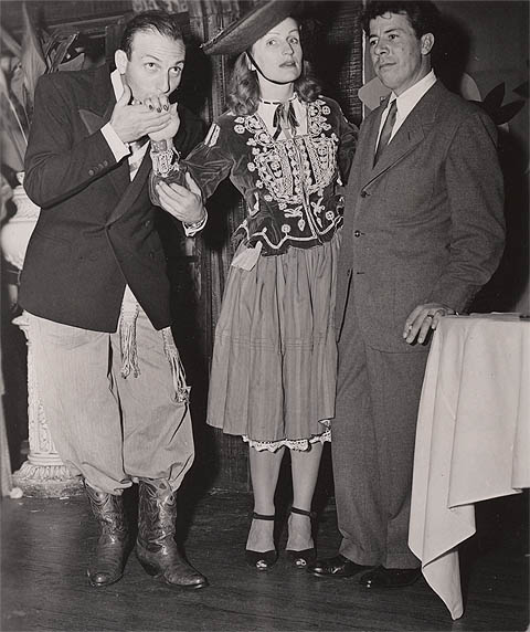 Here’s a rare image of a couple of Disney greats who are rarely seen together: Mary Blair and Fred Moore. It’s at a wrap party for Three Caballeros hence the South American regalia. The guy putting the moves on Mary is Larry Lansburgh, a cameraman and the assistant production supervisor of Three Cabs.
