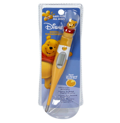 However, last night I found myself at an overstock outlet store, Big Lots, and lo and behold: a Disney Pooh Rectal Thermometer! It doesn’t play the theme song in your ass like the Spongebob product does – but otherwise its a perfect match of character-to-merchandise! It’ll go great with the Pooh Huggies diapers and Looney Tunes Baby Wipes I also found.