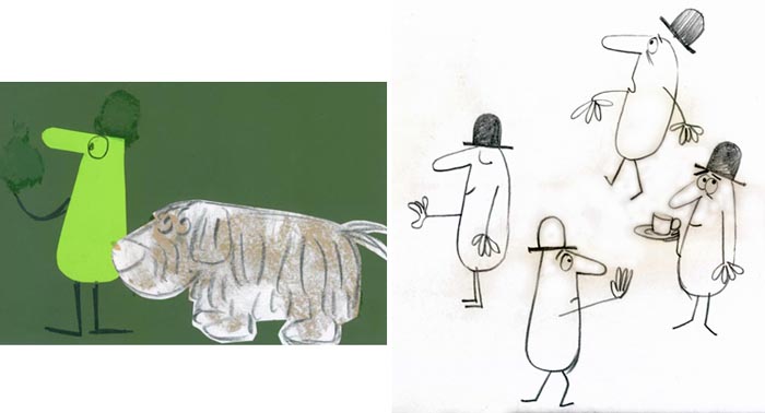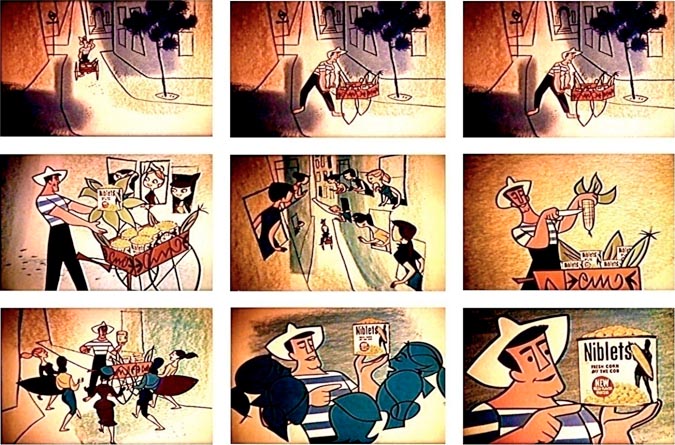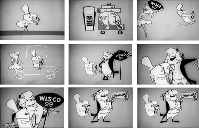 Levitt’s star rose during the 1950s when commercials and commissioned films were produced at an increasingly frenetic pace. His spare but visually sophisticated style was ideal for advertising, and he was much sought after as a designer, storyboard and layout artist. “He was a great artist,” said animator Bill Littlejohn. “And his layouts were the best. He could animate, too. I sure liked working with him. He was so damn good at what he did. He knew the problems that the animators would face and he would design things with that in mind.”