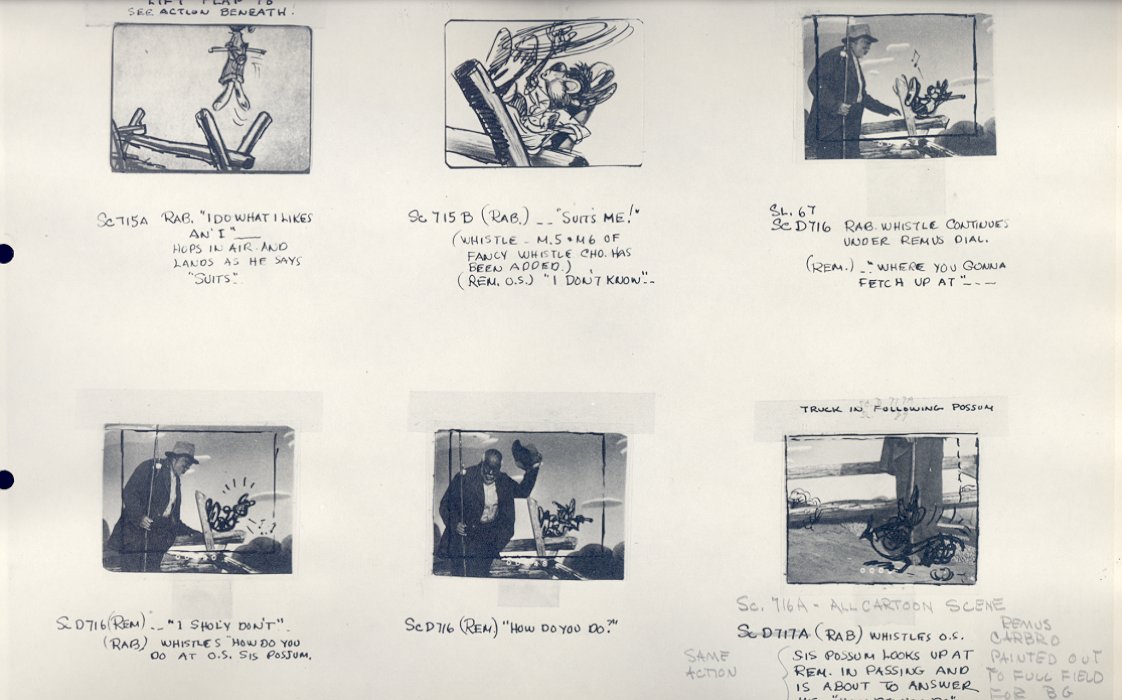 On a related note, Mike Van Eaton just acquired a set of Ub Iwerks notes and production boards from SotS (see storyboards below, click thumbnails to see larger images). Note the deleted sequence on the boards second row, below right. Mike isn’t selling these – but graciously allowed me to post them for our readers enjoyment.