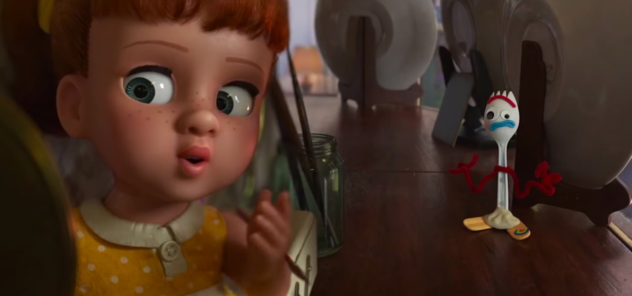 For instance: split-diopter shots. In live action, this entails using a special camera lens attachment that can make elements in both the foreground and background appear equally in focus. This method of simulating deep focus generates an uncanny feeling, as it’s palpably artificial. Which is why, according to Puschak, Toy Story 4 replicates the effect in a scene with the creepy doll Gabby Gabby.