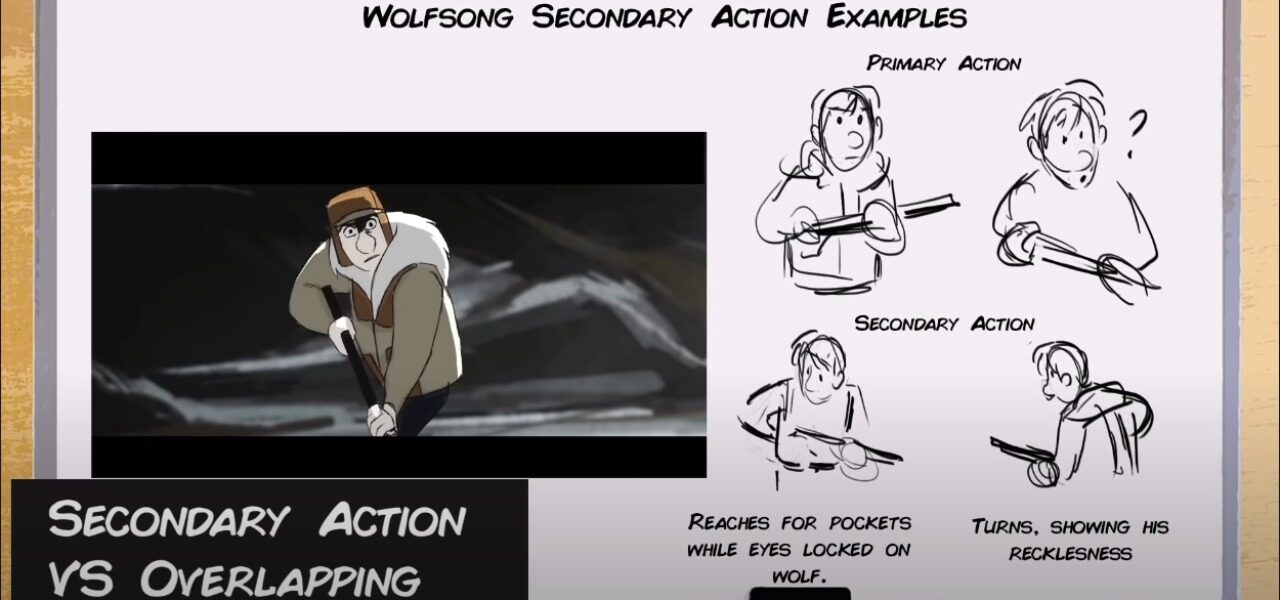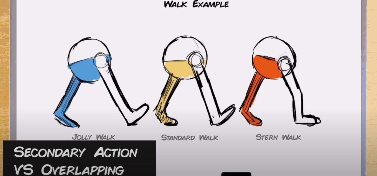 Pantoja’s frustration hits its peak when discussing secondary action vs overlapping, which he sees as the most regular mix-up that even professional animators make with regularity. Overlapping is the follow through of things like hair, cloth, and body parts where one part of an object begins to move or fall while the rest continues in later frames. So, what is secondary action? Pantoja’s simple explanation is that: “It’s a layered attitude on top of the primary action.” In his example, he uses a pair of walking legs to show how small details and nuances can be used to indicate how the character is feeling, from jolly, to normal, to stern. It’s the pep in a character’s step.