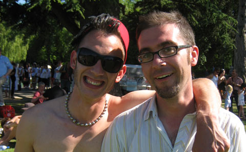 Director Cordell Barker (The Cat Came Back) surrounded by men from Annecy’s Popeye fan club.