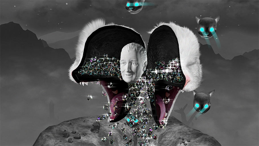 A mesmerizing storyteller with a gift for open-ended, absurdist narratives—“The story for Octocat came to me by reading the Bible word-for-word backwards,” he matter-of-factly observes—OReilly is resolutely independent, moving freely among television network, feature film, and music video commissions; metaphysical, otherworldly video games and interactive projects that question ideas of the self and the nature of role-playing (Mountain and Character Mirror); Tumblr games, iPhone hologram apps, and Twitter-based comic strips; and virtual reality environments.