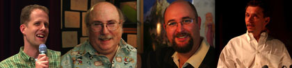 The 12th Marc Davis Celebration of Animation Drawing on the Future: Mentorship In Animation will feature (above L to R) Pete Docter (Monsters Inc), Eric Goldberg (Pocahontas), James Baxter (Enchanted) and Andreas Deja (Aladdin), in a panel moderated by animation critic Charles Solomon. The panelists will spotlight the mentors who fostered their professional development, as well as provide insights into their individual approaches to their art. The lecture will include clips from the animation that inspired each of the panelists, and from their own work reflecting that inspiration.