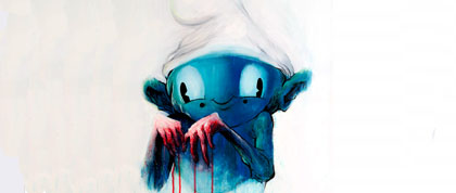 Meltdown Comics in Hollywood is celebrating the “wonderfully mesmerizing phenomenon of ’80’s era cartoons” with a gallery show opening this Saturday (4/5). Gag Me With A Toon features a fine array of artists (including Jim Mahfood, Roman Dirge and 24 others) re-interpreting their favorite little blue creatures and transforming robots from that mind numbing decade, in a show show curated by artist Steven Daily. Sneak peek online here.