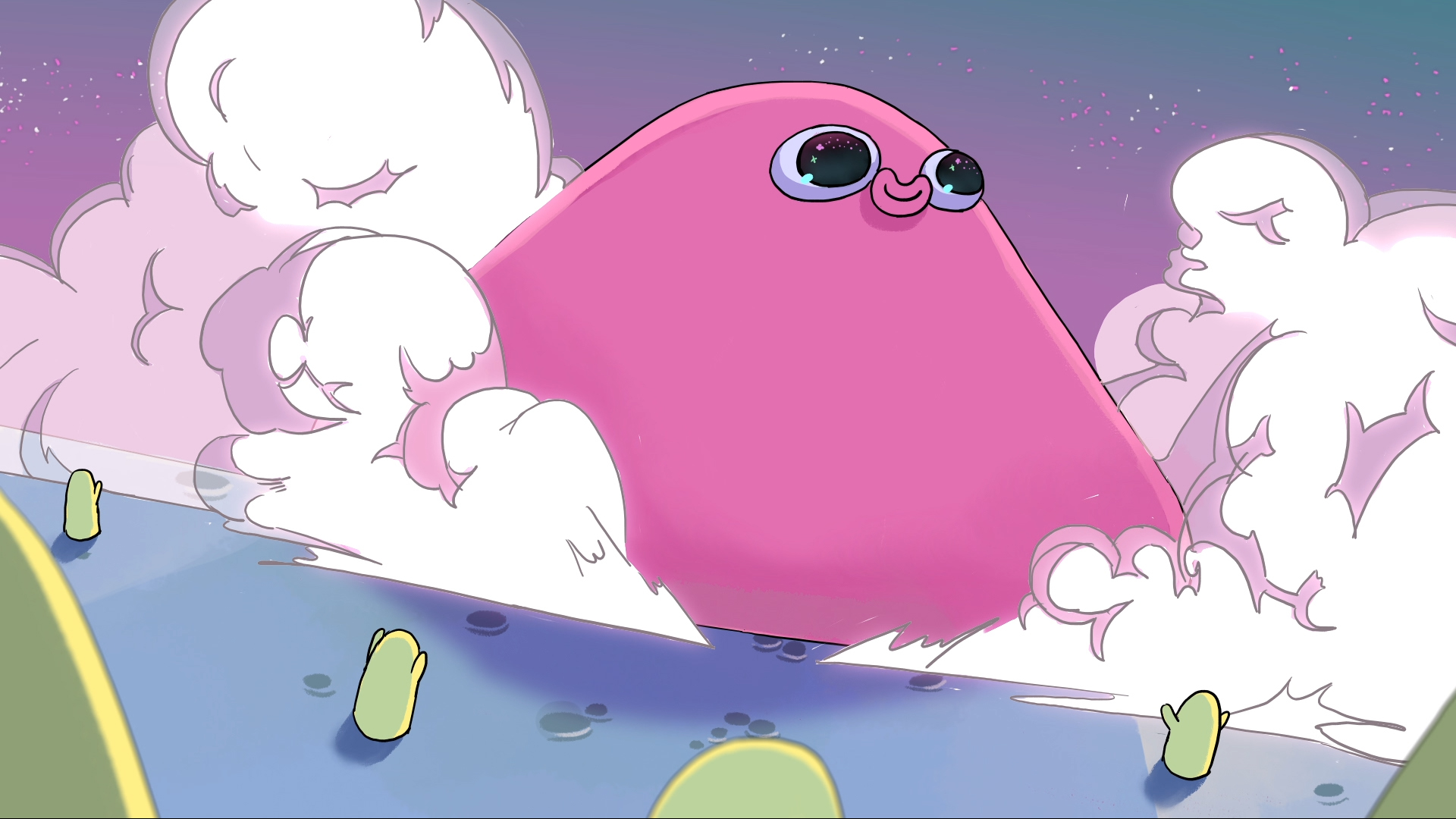 We were shown a few minutes of finished animation which established the show’s world: the pimple and its buddies cavorted wordlessly on barren landscapes which we take to be human skin. The pitch told us that Jellypimple will explore the relationships between these critters and the humans they live on. It remains to be seen how the series will navigate the transitions between the two worlds — and, crucially, how it will develop the pimple into a character with agency and meaning.