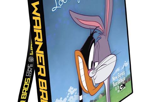 If you’re going, you’ll be seeing a lot of people walking around with this bag (above) which will be handed to all attendees of Comic Con. It’s the official carry-bag of the Con, designed by Warner Bros. Worldwide TV Marketing. The bags feature artwork from 10 different Warner Bros. titles (TV series, video games, DC Comics) on one side, with official Comic-Con 2011 artwork (also designed by WB WW TV Mktg) on the other. For the first time, the giant-sized (24″x28″) bag converts into a backpack, making it more functional. And, yes, the protective poster tube remains intact.