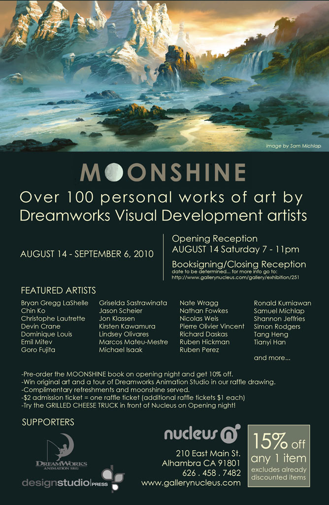 Animation viz-dev artist Goro Fujita tells us that he and 44 other artists from Dreamworks are having a gallery show at Gallery Nucleus in Alhambra, California, from August 14th through September 6th. The artists include Fujita (art pictured above), Nate Wragg, Christophe Lautrette and Devin Crane. The exhibit will feature personal works of art to be featured in an upcoming group book, Moonshine. There’s an opening reception on Saturday, August 14th, from 7 pm – 11 pm and a closing reception/book signing on Friday, September 3rd, at 7 pm. The group has also started a blog. For more info on the exhibit click here.