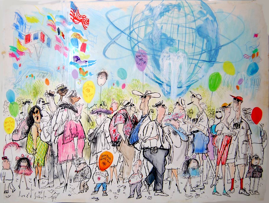A taste of Searle’s vast body of work is currently on display at the Cartoon Art Museum’s new exhibit, “Searle in America.” The exhibit, which focuses on his reportage assignments in the United States was organized by Pixar story artist and Searle Tribute blog curator Matt Jones. It will be on display through March 30, 2014: