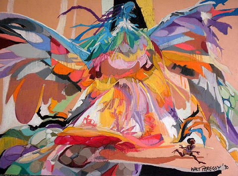 Animation legend Walt Peregoy (background painter on Sleeping Beauty and Paul Bunyan, color stylist of 101 Dalmatians, and background stylist on Scooby Doo, Where Are You!), who gained some notoriety earlier this year with this unfiltered interview, is having a show of his fine art this Friday, August 5. The reception for “The Little Man in My Head” will take place between 7 and 10pm at the Gallery 839 at the Animation Guild (1105 N. Hollywood Way, Burbank, CA 91505).