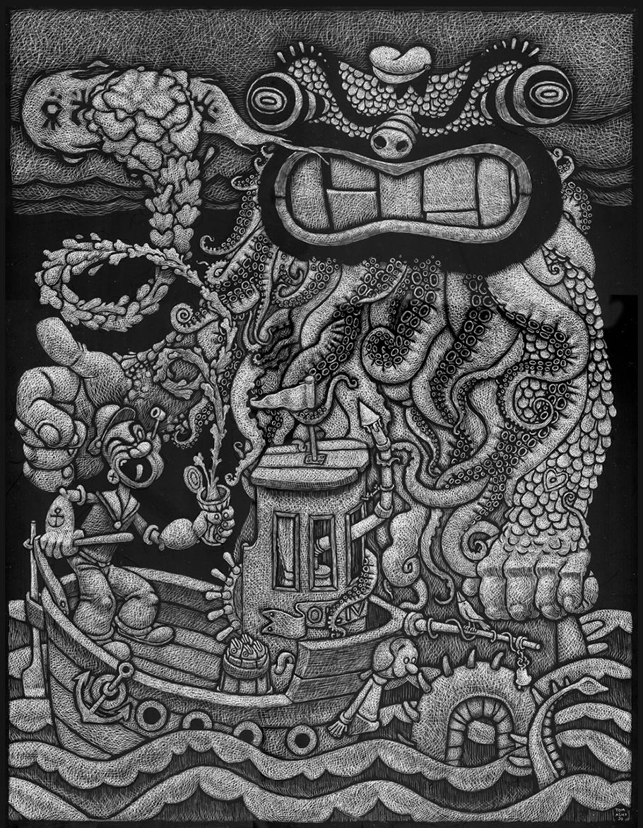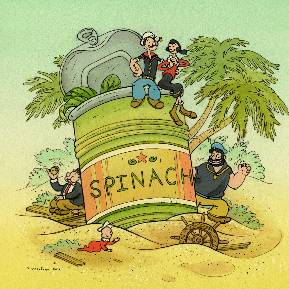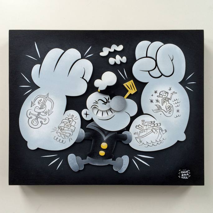 Popeye brings out the best in everybody. Tonight in Los Angeles is the opening of “Strong to the Finich! An Official Popeye Tribute Art Show” and there’s some rather attractive pieces in it. A lot of the show’s artwork can be seen at the show’s official Tumblr.