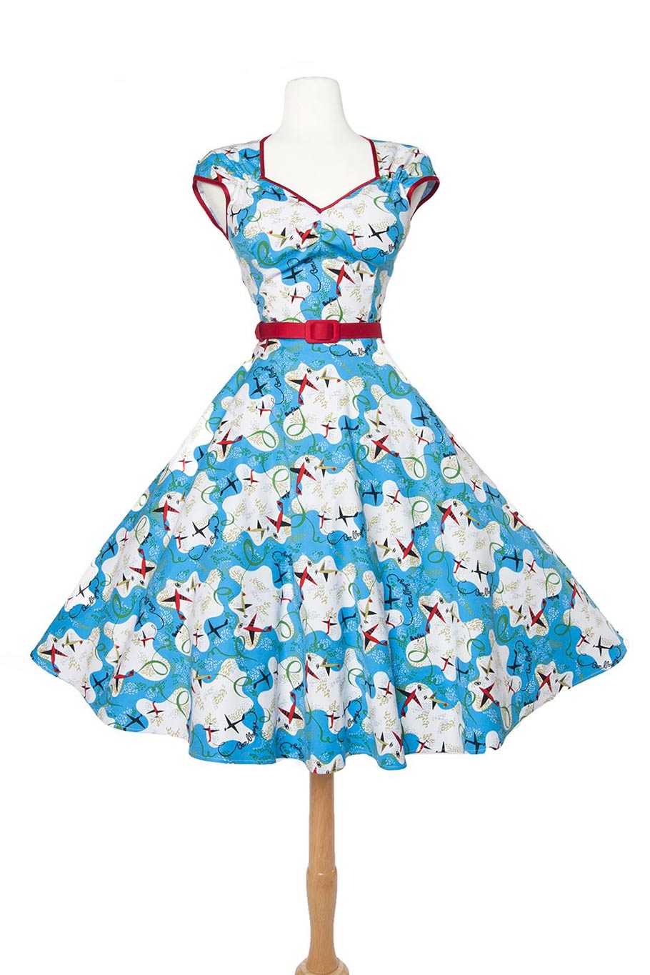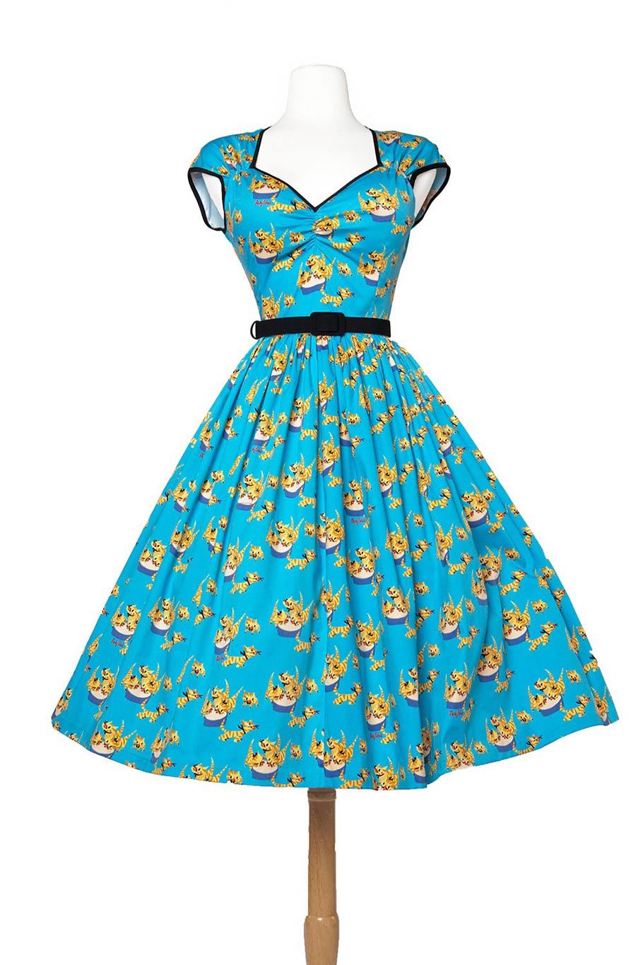 These designs will be incorporated as all-over and border prints on classic Pinup Couture designs, including the flirty and famed 1960s-style Jenny Dress which features adjustable straps and a gathered full skirt, the stunning 1950s-style Heidi Dress, which showcases a sweetheart neckline, covered belt, and flattering swing skirt, and the sleek and sexy Evangeline Dress, a fitted, wiggle-style style making its debut in this collection.