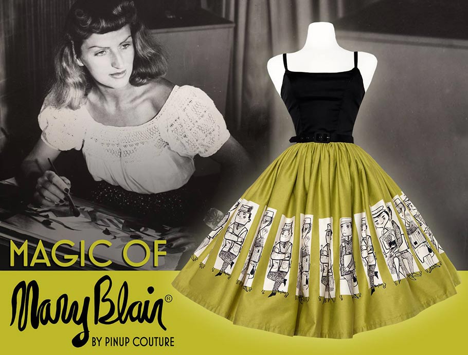 “This collection is a dream come true for Pinup Girl Clothing,” said Pinup Girl creative director Micheline Pitt. “I started my career in animation—frequently the only woman in room—and Mary is my idol. She accomplished so much, refused to be overlooked in a male-dominated world, and stands out as inspiration for all graphic designers, illustrators, innovators, and dreamers today.”
