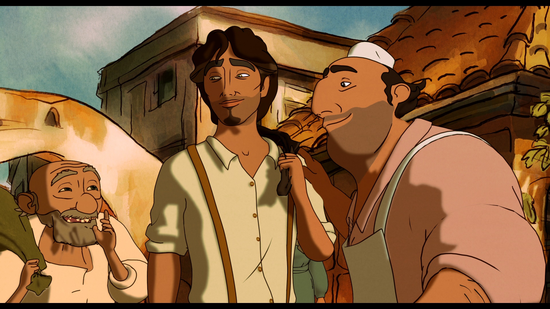 Not only did Hayek make the novel decision to produce a philosophically-driven animated feature with religious undertones, she also decided to make it hand-drawn. It’s almost as if she wanted no one to see it. I kid, I kid. But seriously, the film doesn’t have a distributor in the United States yet, and that’s telling of the irrationally hostile environment for hand-drawn feature animation in this country. It’s certainly not for a lack of quality; the stills gallery below and the names of the artists involved should leave little doubt that this will be a gorgeous-looking film. [UPDATE: The film isn’t entirely hand-drawn. Parts of the film are toon-shaded CG.]