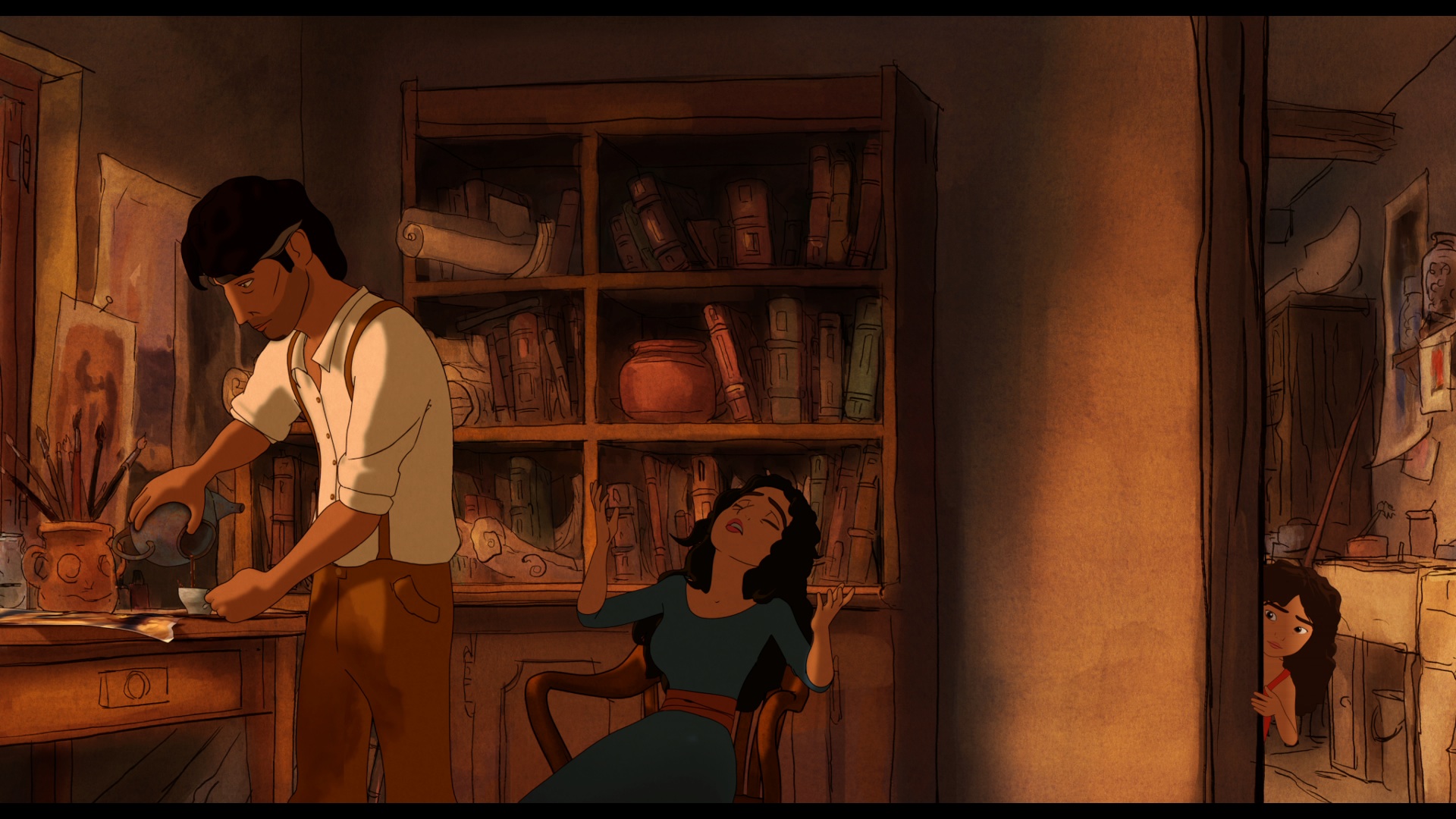 The filmmakers who participated were Michal Socha (Chick, plus that amazing Simpsons opening), Joan Gratz (Mona Lisa Descending a Staircase), Nina Paley (Sita Sings the Blues), Joann Sfar (The Rabbi’s Cat), Tomm Moore (Secret of Kells), Bill Plympton (Guard Dog, Cheatin’), Mohammed Saeed Harib (Freej), and Paul and Gaetan Brizzi (“Firebird Suite” in Fantasia 2000). Allers handled the overarching narrative which concerns the friendship between a young girl and an imprisoned poet.