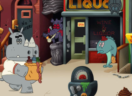 “They wanted a multitude of characters all sort of bouncing along and dancing and that kind of stuff. Fleischer cartoons have always been my favorites, so my approach was to try to do it in a style that was evocative of Betty Boop and Popeye, without trying to make it look old. I didn’t want to try and do some faux retro piece like in [our web series] Golden Age, as if it were an old cartoon. I wanted to do it in a style that was evocative of those cartoons, but still really vibrant with bright colors, dirty humor and disturbing, gross visuals. The approach was to imagine what Fleischer Studios would do if they were around today and they were animating an all-animal orgy.”