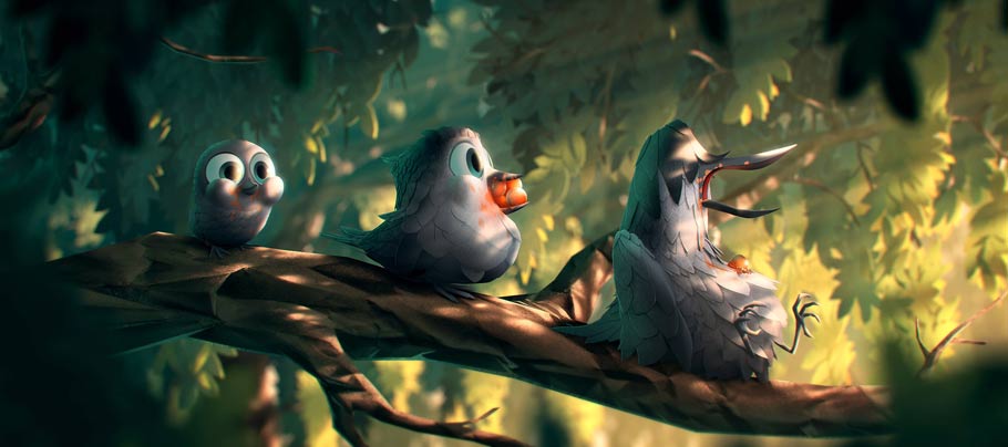 Yellowbird has a fascinating pedigree. The film was designed by Benjamin Renner, a co-director on the Oscar-nominated Ernest and Celestine. Renner designed Yellowbird prior to directing Ernest & Celestine, while he was still a student at the French school La Poudrière. Yellowbird’s helmer is industry veteran Christian De Vita, a story artist on Frankenweenie and Fantastic Mr. Fox. The film originally had a second director, Dominique Monfery (director of Disney’s Destino), but it appears that Monfery is no longer involved. De Vita worked from a script by screenwriter Antoine Barraud, French ornithologist Guilhem Lesaffre, and Cory Edwards, the co-writer/co-director of Hoodwinked (2005).