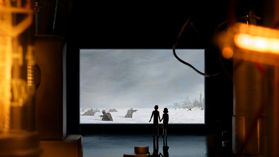 Images from an early concept test (which Cinemascope reports ran to three-and-a-half minutes in length) feature hand-drawn 2D characters—character design and animation direction by Waltz with Bashir’s David Polonsky and Yoni Goodman, respectively—superimposed on miniature sets.
