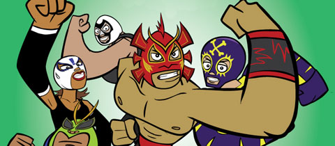 Eddie Mort and Lili Chin (Mucha Lucha!) have returned to the cartoon wrestling arena to create a full length flash feature, Los Campeones. The movie opened theatrically in Mexico back in October. It has no U.S. distributor yet, but will be screening in Los Angeles at the Egyptian Theatre on Thursday February 5th. Eddie and Lili will be there to introduce the film and show off original art at the 7:30pm show. For more details check the Campeones MySpace or the Fwak blog.
